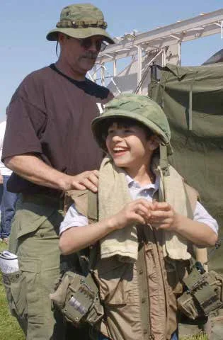 During school visits, Schaffer has students dress in 20–30 pounds of authentic combat gear and carry replica weapons such as AK-47s or M60s. He assigns them squad roles—radio operator, squad leader, point man—and describes the trust soldiers had in each other: “you had to know if you were wounded, that somebody would go out and get you.”
